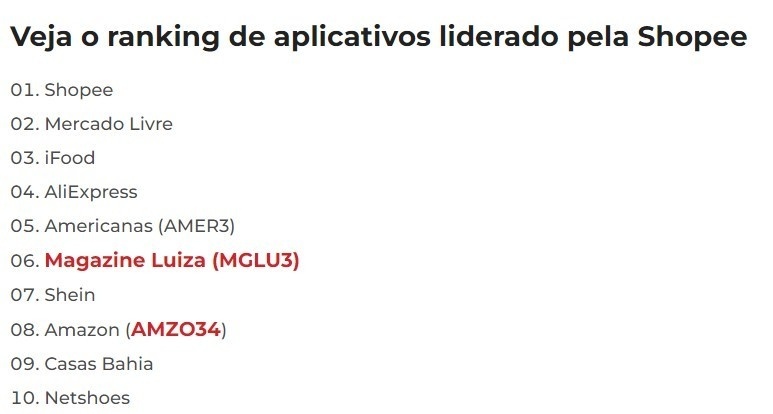另外,咨询公司Conversion调查数据显示,2022年上半年巴西访问量排名前十的平台有:Mercado Livre、Shopee、iFood、AliExpress、Americanas、Magazine Luiza、Shein、Amazon Brazil、Casas Bahia、Netshoes。