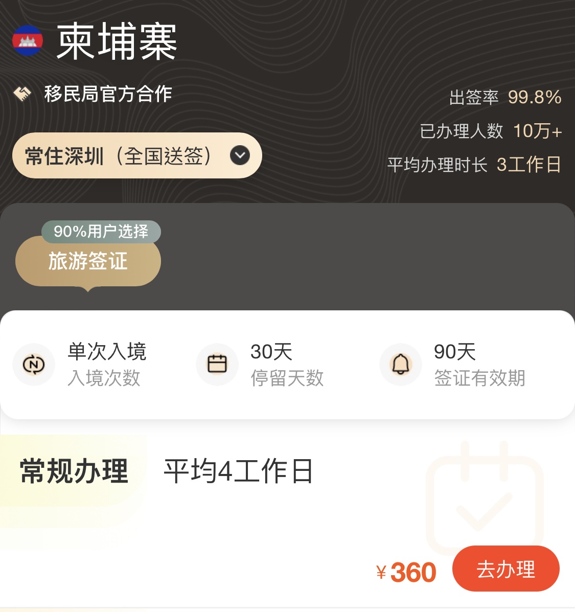 2月13日消息,飞猪今日宣布与柬埔寨官方指定电子签证办理机构达成合作,消费者通过飞猪在线签证中心办理赴柬旅游签证时,可以在线上传资料,一键送签移民局,免去邮寄等流程,平均3个工作日即可拿到签证结果。