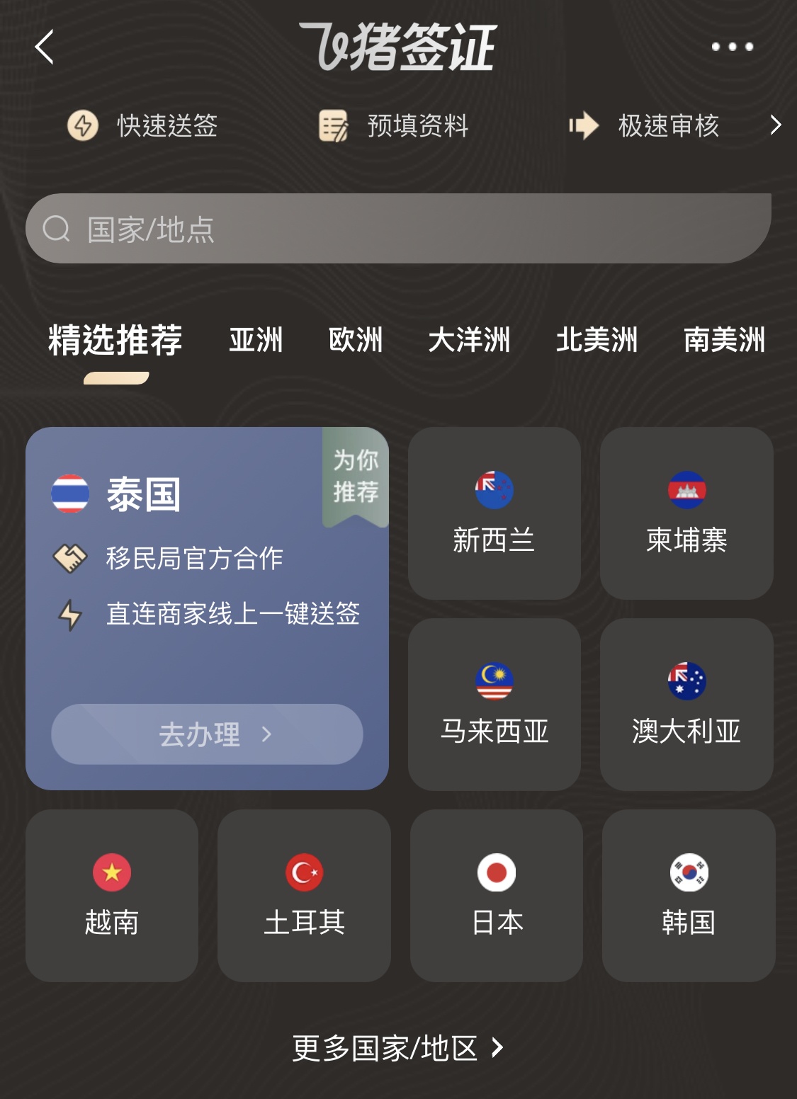 值得一提的是,飞猪数字化签证中心已具备OCR识别极速填表、在线自拍签证照、进度跟踪等功能,针对一些目的地国家还有一键上门取件、指纹免重复录入等服务。截至目前,飞猪已经为VFS、TLS、BLS三大签证中心提供数字化能力,可通过线下扫码支付办理34个国家的签证。