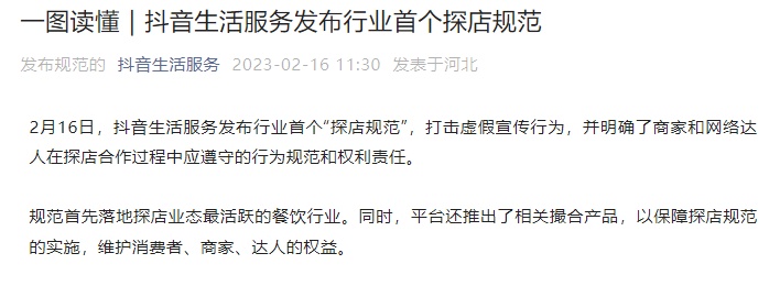 抖音生活服务发布行业首个探店规范