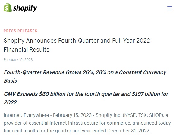 Shopify公布2022年财报 总收入56亿美元 GMV达1972亿美元