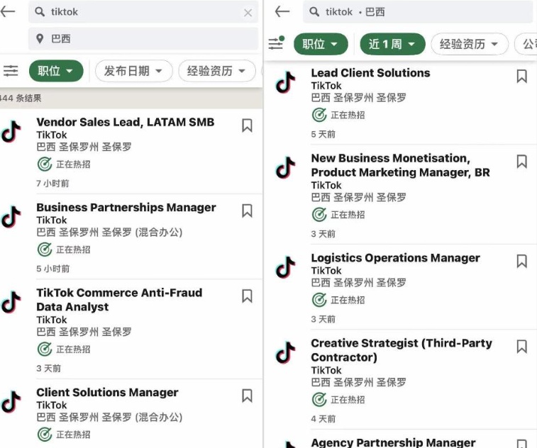 而早在去年10月就曾传出TikTok Shop巴西站将在2023年上半年开放,近日在TikTok的最新招聘信息中心这一消息似乎也得到了印证。截止到2月,TikTok发布了包含了物流主管、电商顾问、电商人力资源管理项目经理、电商内容及创作者治理负责人等40多个巴西的职位,足以证明其进军巴西的决心。
