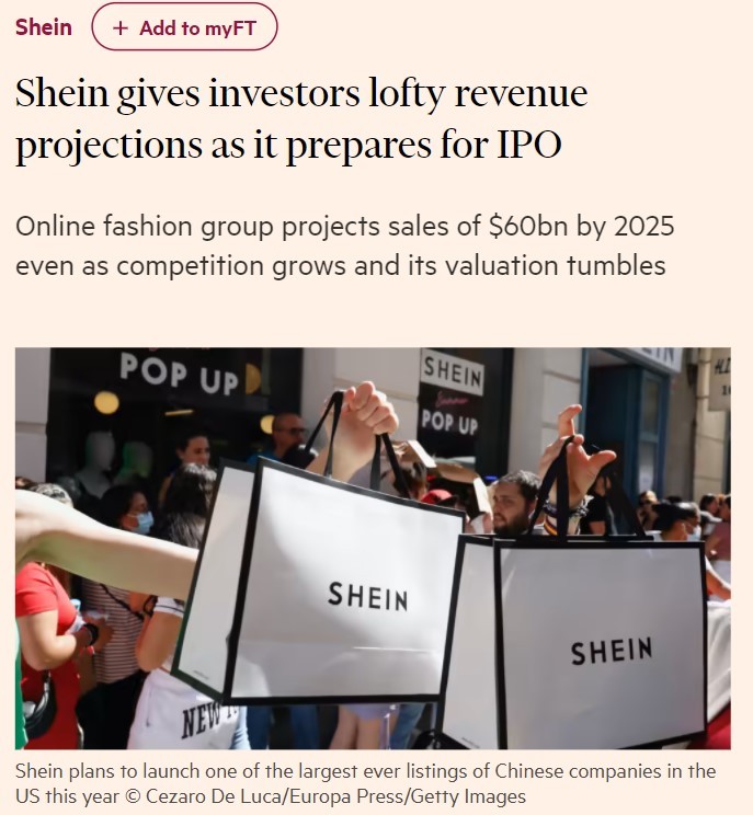 Shein拟今年赴美IPO 目标2025年营收585亿美元