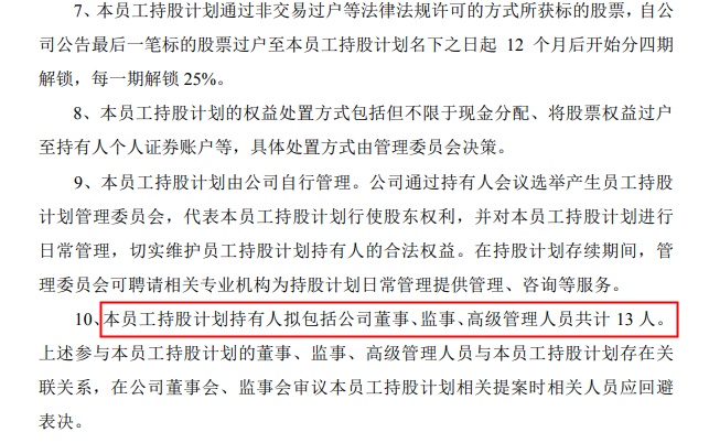 本员工持股计划通过非交易过户等法律法规许可的方式所获标的股票,自公司公告最后一笔标的股票过户至本员工持股计划名下之日起12个月后开始分四期解锁,每一期解锁25%。