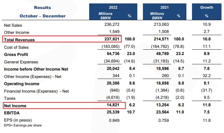 (图源:沃尔玛墨西哥2022年Q4财报)