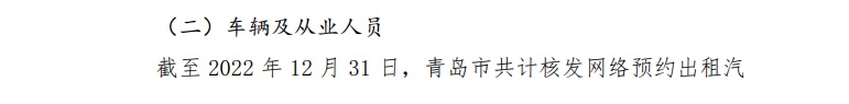 截至2022年12月31日,青岛市共计核发网络预约出租汽车道路运输证46085张,较第三季度增加3860张;核发网络预约出租汽车从业资格证88011张,较三季度增加6052张。2022年10月1日至12月31日,青岛市共有666辆网约车退出营运,累计退出车辆共8795辆。