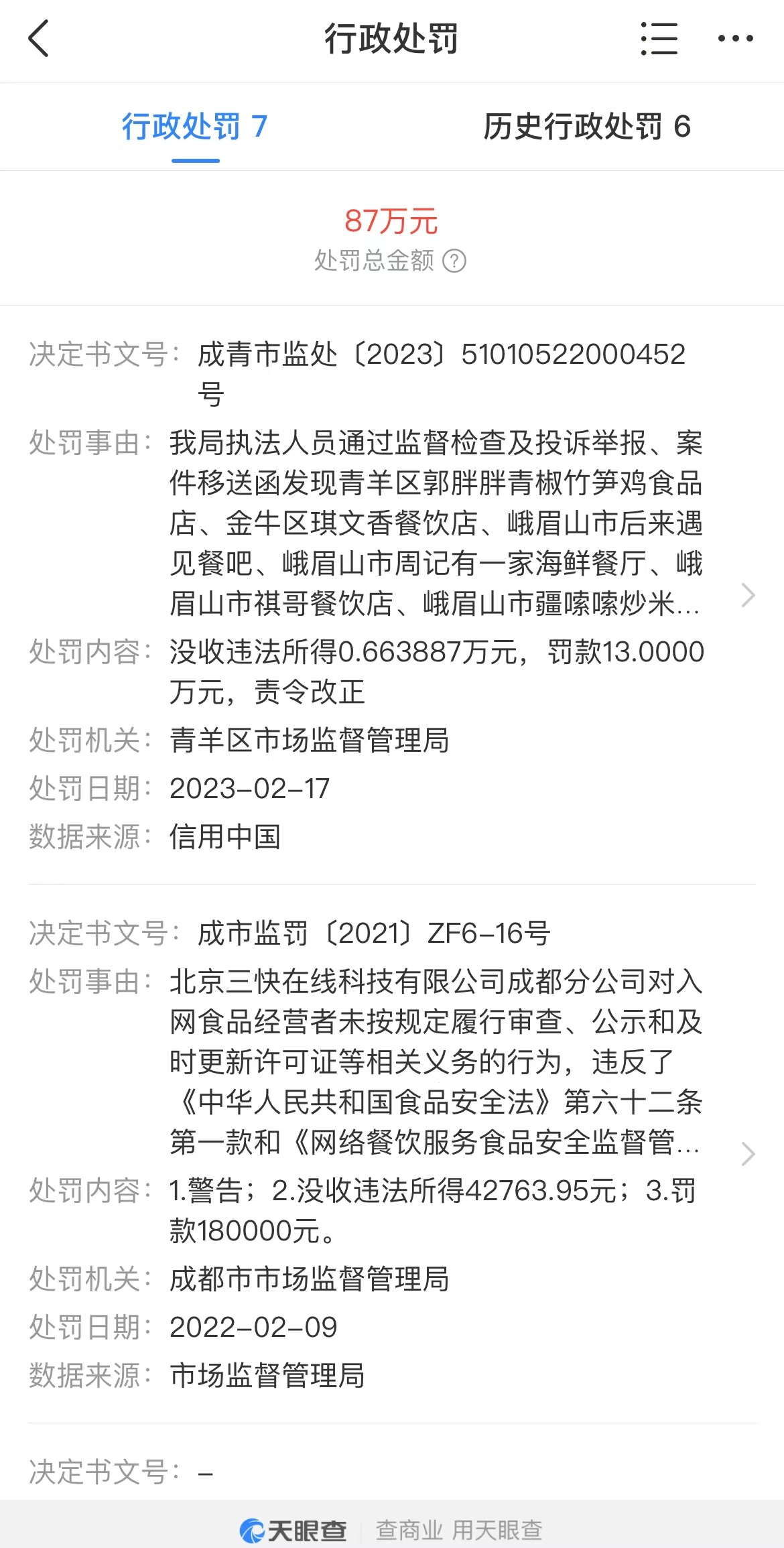 值得一提的是,此前,该公司已多次因未按规定履行对入网食品经营者审查公示和及时更新许可证等相关义务被处罚。