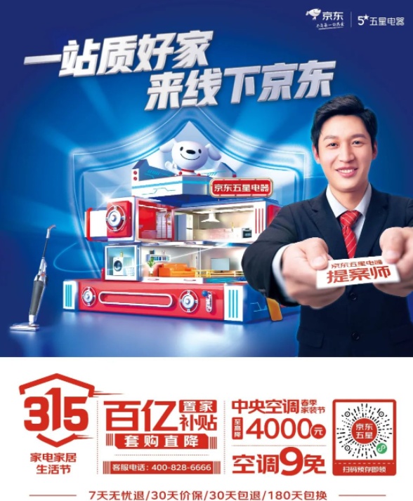 京东五星电器还全面升级315“家电家居购物节”服务内容,在“7天无理由退货、30天价保、大家电质量问题30天包退180天包换”基础上,重点升级“价保”、“焕新”、“送装”和“维修”服务,全面刷新线下卖场的服务体验。
