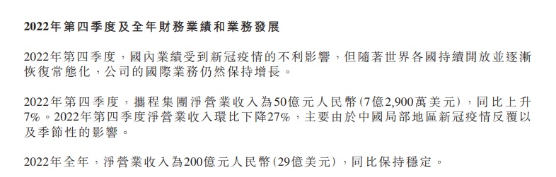 3月7日,携程发布截至2022年12月31日的第四季度及全年未经审计财务业绩。