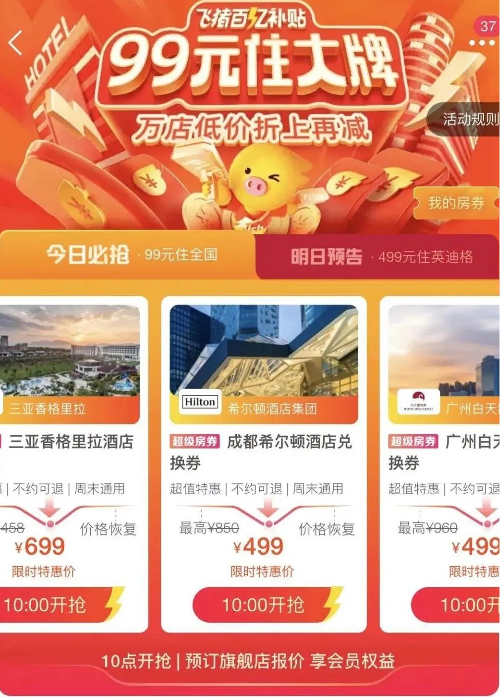 另一边,飞猪和携程也在激发下沉市场的需求。2020年9月,飞猪宣布启动百亿补贴计划,覆盖全国100个城市10万家酒店,包括不同星级、不同类型的酒店、民宿、公寓。2021年,携程正式推出“乡村旅游振兴”战略,同年7月,携程首个五星级度假农庄正式开业……