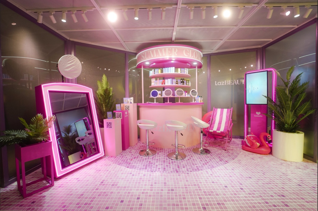活动中,Lazada根据不同的美容主题为消费者提供沉浸式美容体验和有效方案,如“闪亮夏日”专区展示了适合菲律宾炎热夏日的美容彩妆产品,消费者不仅可以在每个主题房间拍照打卡,与交互装置互动,还可以现场体验产品并扫码在Lazada下单。