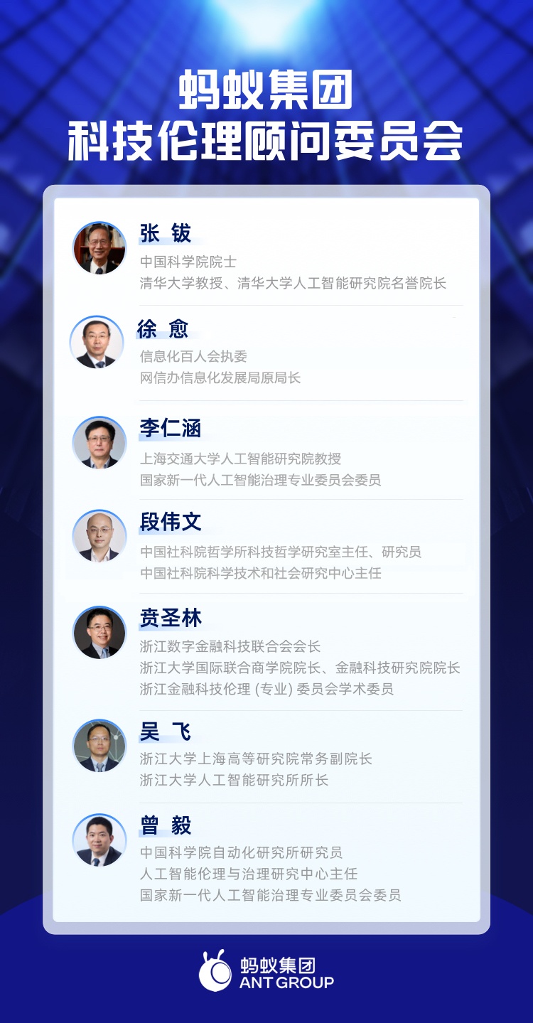 本月初,蚂蚁集团设立科技伦理顾问委员会,并举办首次研讨会。蚂蚁集团科技伦理顾问委员会由 7 位资深学界、业界专业人士构成,为蚂蚁集团的科技伦理建设工作提供咨询建议与决策参考。