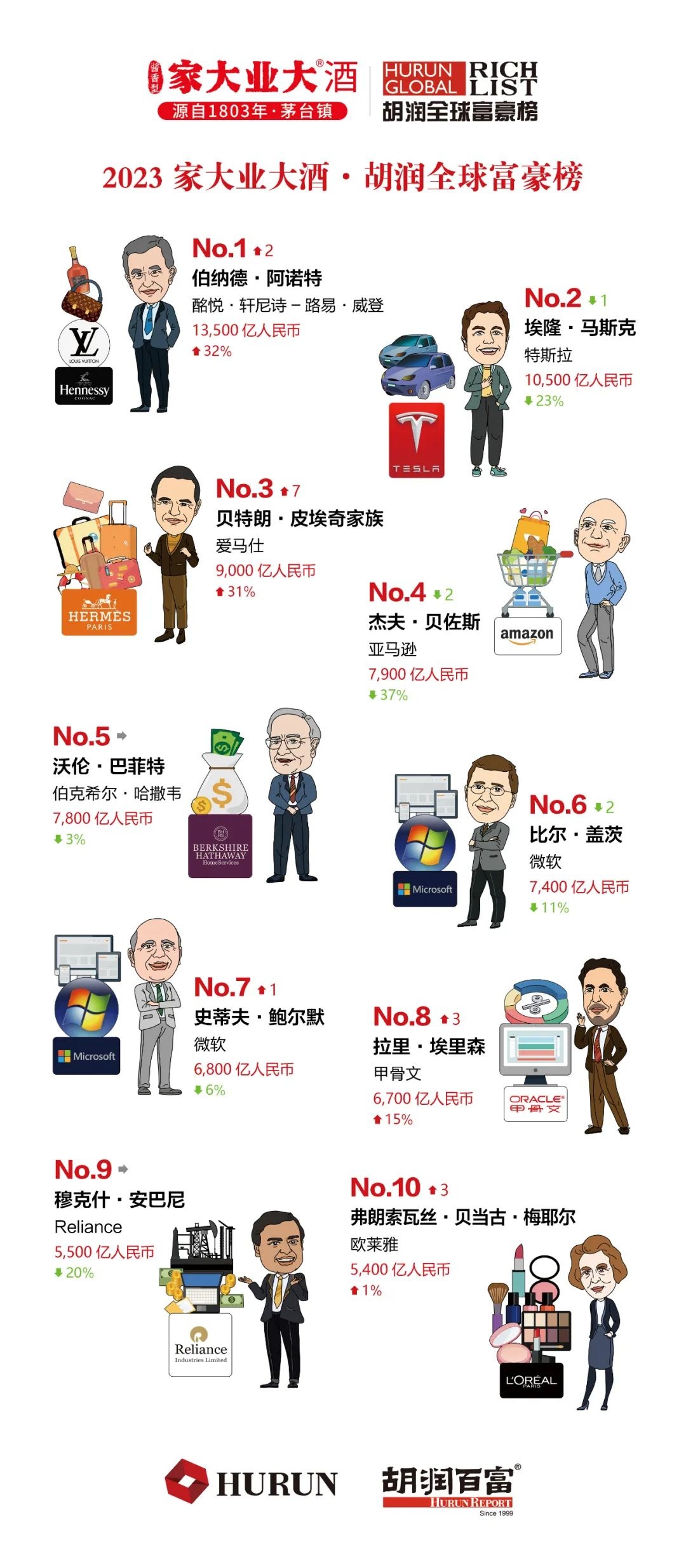 附《2023家大业大酒·胡润全球富豪榜》前100名