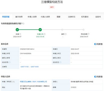 近日,阿里巴巴达摩院(杭州)科技有限公司还公开“预训练服务系统及基于预训练服务系统的服务提供方法”、“一种图像检测、三维建模方法、图像分析方法和装置”、“一种图像识别、预测模型处理方法、三维建模方法和装置”等多项专利。