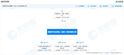 股权穿透图显示,阿里巴巴达摩院(杭州)科技有限公司由阿里巴巴(中国)有限公司全资持股,认缴金额1000万人民币。