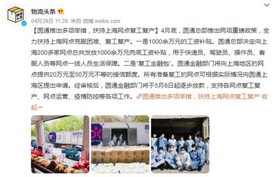 值得注意的是,4月底,圆通总部还推出两项政策,全力扶持上海网点克服困难、复工复产。其一,圆通总部决定向上海200多家网点总共发放1000余万元兜底工资补贴,用于快递员、驾驶员、操作员、客服人员等网点一线人员生活保障,让他们充满干劲地投入到复工复产中来。