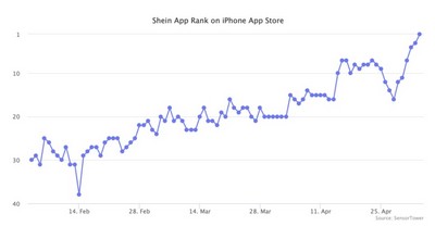 据介绍,Shein之前是购物类下载量最大的应用,但在5月3日成为iPhone App Store所有类别的第一名。它在2021年5月首次登上购物类的榜首,是2021年全球第二受欢迎的购物应用程序。在几十个国家的购物类别中,它仍然排名第一。