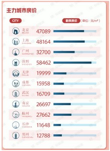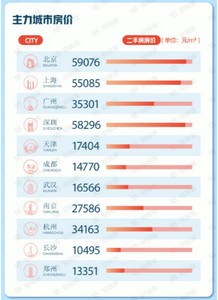 报告数据显示,4月份全国重点监测65城新房线上均价为17530元/㎡,环比下跌0.09%,有23城新房房价环比上涨。一线城市中,深圳新房线上均价为58462元/㎡,上海和北京新房线上均价分别为48164元/㎡和47089元/㎡,广州新房线上均价为32700元/㎡。新一线城市中,杭州和南京的新房线上均价分别为27662元/㎡、26697元/㎡。