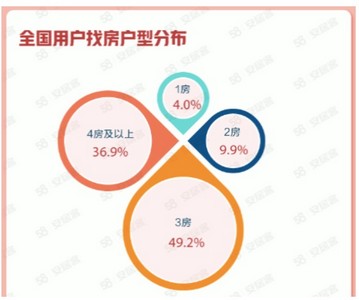 在全国用户找房户型分布方面,2022年4月全国新房市场中,3居室找房热度占比49.2%;4居室及以上户型找房热度占比36.9%,较上月增长1.7个百分点。