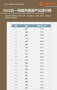 受北京和上海疫情影响,根据灯塔专业版显示,今年五一档票房表现TOP3的城市是深圳、成都和重庆,排名前三的影院均来自深圳市,珠三角和川渝地区二线城市成为票房主力,这与一个月前的清明档有着较大区别,彼时票房TOP3城市是北京、广州和成都。城市票房水平除了与当地一直以来的票房大盘有关以外,目前疫情是最大的影响因素。北京与上海影院几乎全部关停,暂无票房产出。