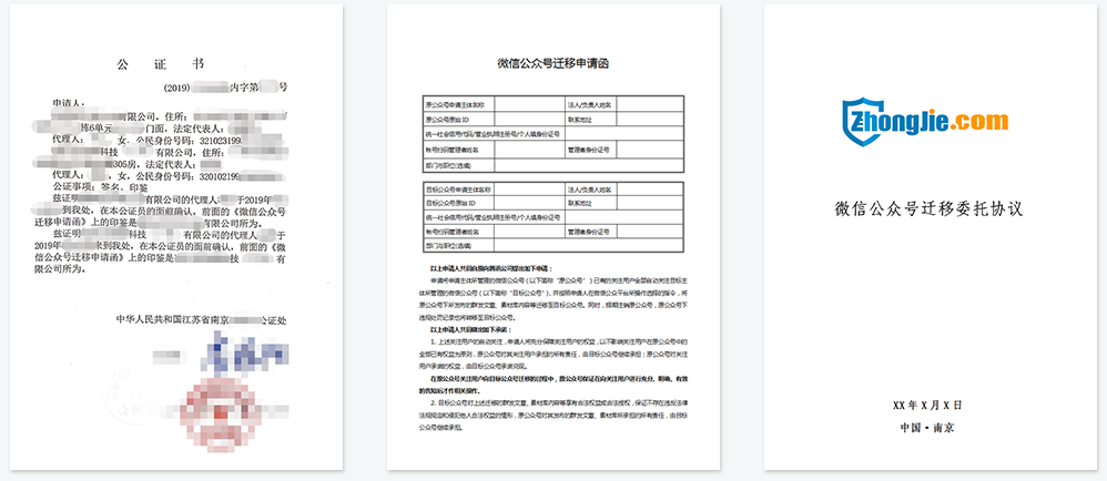 微信公众号迁移公证书 微信公众号迁移申请函 中介网服务协议