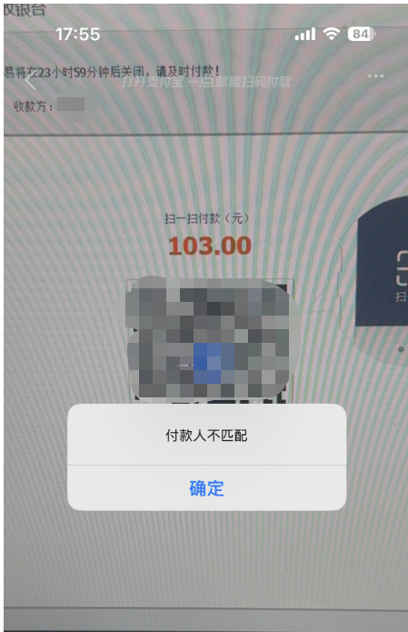 如非订单实名买方支付宝扫码付款会提示‘付款人不匹配’,无法支付交易订单款项;如图所示。