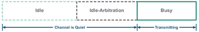 当 CW 倒计时结束时,如果设备发现信道正在占用,设备便自动进入下一个仲裁期。如果设备发现信道处于空闲状态,便开始占用信道,发送数据。