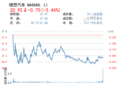 中概股中主要科技股延续跌势,新能源汽车板块全线走低,其中京东跌超 6%,百度跌近 6%,蔚来跌 2.93%,小鹏汽车跌 3.94%,理想汽车跌 3.46%,蔚来将成为首家三地上市车企。