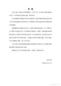 5 月 6 日晚,有网友在新浪微博发文,引发了关于“车车互联 " 功能完整体验的讨论。针对网络关注的相关问题,特声明如下: