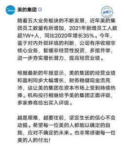 美的回应裁员传闻 鉴于对内外部环境的判断 有序收缩非核心业务