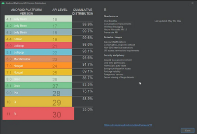 9to5Google 发现,谷歌最近悄悄将 Android 分布图藏在了不重要的位置,但所有信息都可以在Android Studio 中看到。我们可以更好地了解目前运行特定 Android 版本或更新版本的设备的百分比。