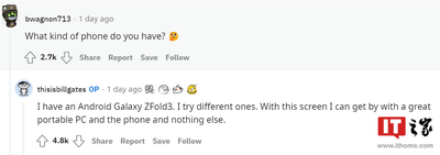 宁推网 5 月 21 日消息,据 9to5Google 报道,在本周的 Reddit AMA 上,微软创始人比尔・盖茨透露,他使用的是一款 Android 手机,但并非微软 Surface Duo。他每天使用的智能手机是三星 Galaxy Z Fold 3。