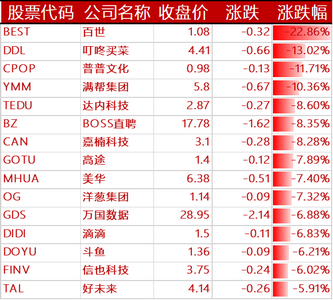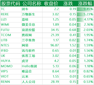 中概股中主要科技股涨跌不一,蔚来登陆新加坡股票交易所,美股跌超 1%。