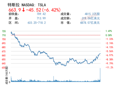 美股三大指数涨跌不一 特斯拉跌逾 6% 叮咚买菜跌超 13% 百世大跌 22%