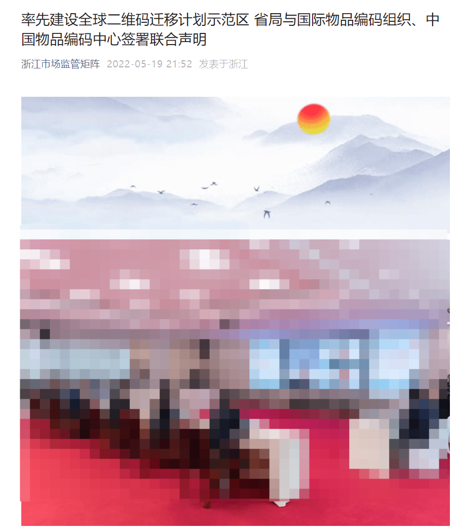 宁推网 5 月 21 日消息,据浙江省市场监督管理局消息,5 月 19 日下午,浙江省市场监管局与国际物品编码组织、中国物品编码中心共同签署三方联合声明,推动浙江率先建设全球二维码迁移计划示范区,共同推进“浙食链”成为全球二维码迁移计划的首个推广应用项目。