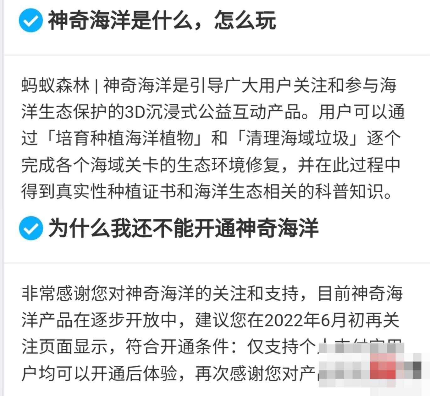 宁推网 5 月 22 日消息,蚂蚁森林昨日开启了新的玩法“神奇海洋”,目前只有小部分人内测中。蚂蚁集团对此表示,护海洋生态系统,人与自然和谐共生,我们在行动。