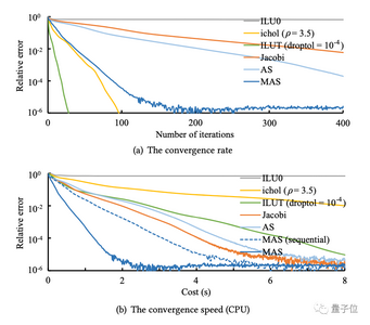 并行计算时仅为 0.118 秒,相比之下 ILU0、ichol 和 ILUT 的成本为 2.50 秒、33.8 秒和 154 秒。