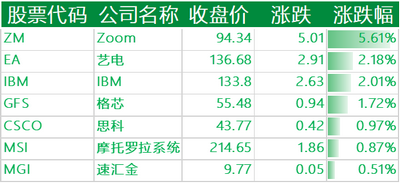 上涨的其他国外科技股包括: