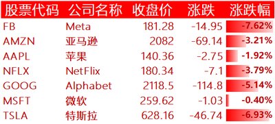美国主要科技巨头全线下跌: