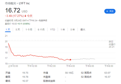 今年 Lyft 股价已经下跌近 61%。
