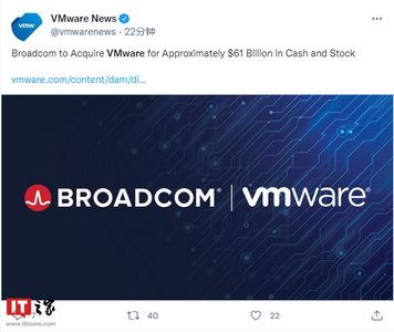 宁推网 5 月 26 日消息,博通宣布将以 610 亿美元现金或股票收购云服务提供商、虚拟机软件巨头 VMware。
