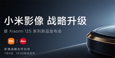 小米Xiaomi 12S 系列新品发布会将于2022年7月4日晚19:00召开