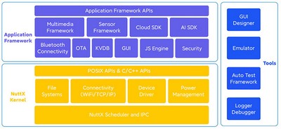 NuttX本身提供了丰富的OS组件,集成了文件系统、网络协议栈、图形库和驱动框架,减少开发成本。