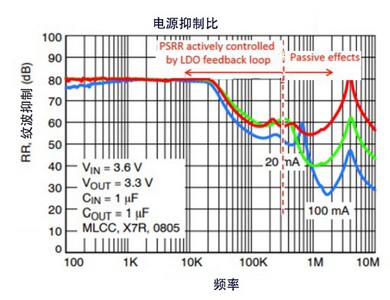 图7. 典型LDO的 PSRR行为与频率的关系