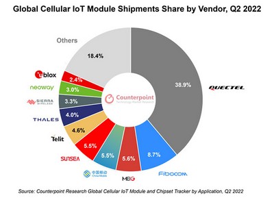 2022年第二季度全球蜂窝物联网模块出货量同比增长20%