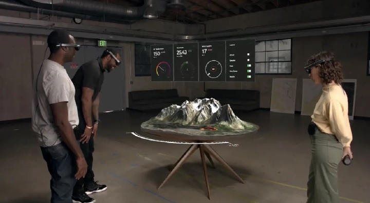 Magic Leap 已重新面向企业用例。在这里,一群人想象一个野火场景,地形和统计数据的图像叠加在他们的世界观上。制造如此紧凑的设备会遇到当前电子产品的限制,尤其是电池: