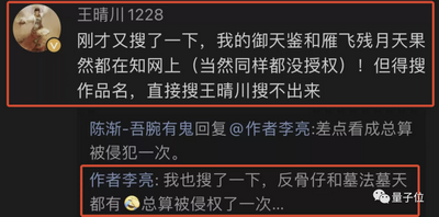 有同样困惑的不仅仅是陈渐,、的作者王晴川,、的作者李亮也留言表示,自己的小说作品也能在知网上检索出来。