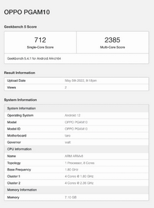 跑分方面,骁龙7 Gen1单核成绩为712,多核成绩为2385,与高通骁龙778G跑分相差不大,首发这颗芯片的OPPOReno8系列可能会在本月正式发布。