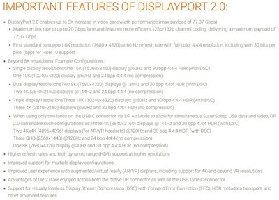 DisplayPort标准定义的UHBR速率代表了显示连接的新模式,它具有前所未有的带宽,可以促进流畅的游戏、高效的视频播放和大于8K分辨率的专业显示。