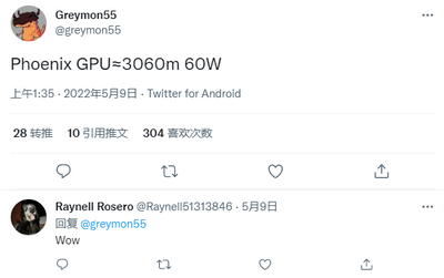 知名爆料人 @Greymon55 刚刚在 Twitter 上透露 —— 定于明年到来的AMD 锐龙 7000 系列 Phoenix APU 处理器的核显性能,或与英伟达 GeForce RTX 3060M独立相媲美。若真如此,这意味着 RDNA 3 GPU 内核将为轻薄笔记本电脑市场带来惊人的图形性能提升。